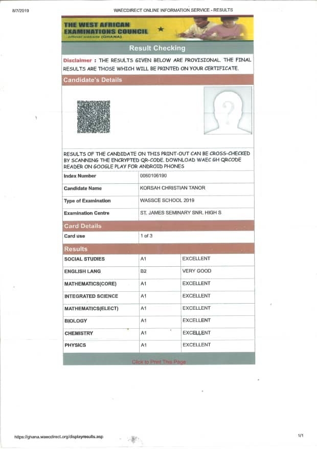 Brilliant SHS graduate with 7As and no GETFund support...